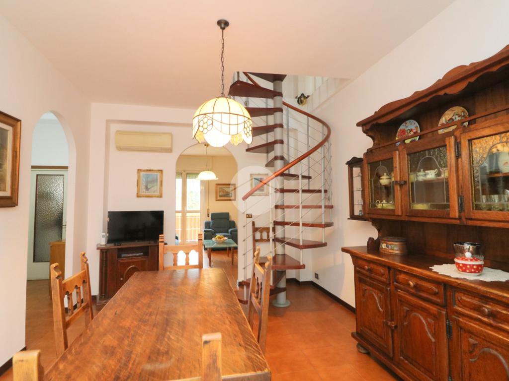 Grazie a un intervento di ristrutturazione, gli spazi sono stati completamente ridisegnati per creare un’abitazione ampia, articolata su due livelli collegati internamente da una scala a chiocciola, che unisce con eleganza e funzionalità le due zone della casa.