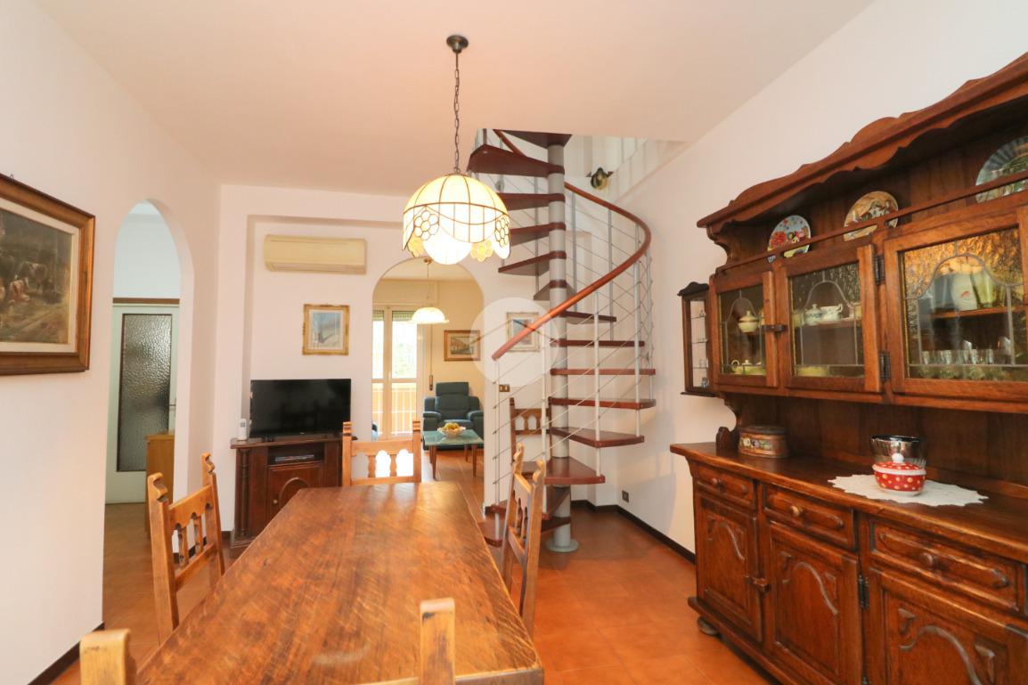 In un tranquillo contesto residenziale risalente agli anni ’60, composto da più palazzine basse con diverse scale e solo due piani ciascuna, proponiamo un interessante appartamento unico nel suo genere, frutto dell’unione di due unità immobiliari, originariamente collocate una al primo e l’altra al secondo ed ultimo piano.