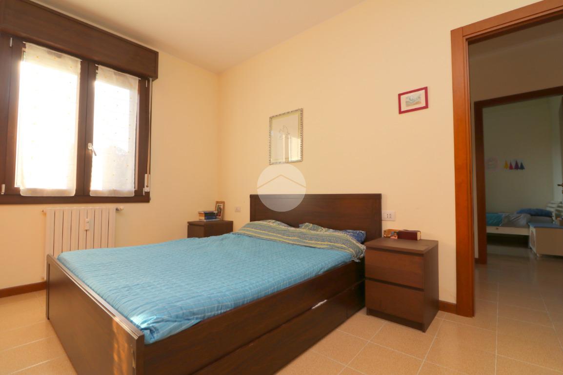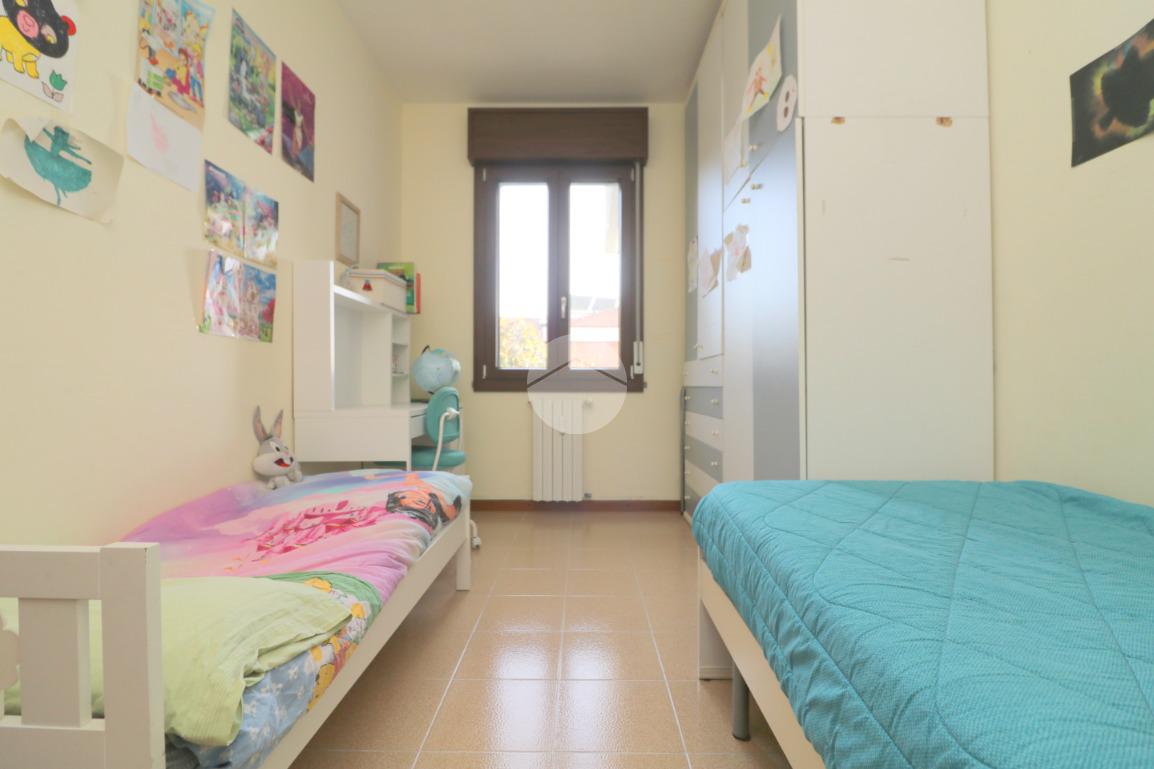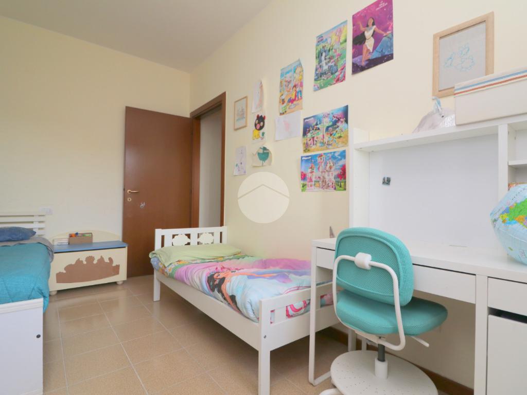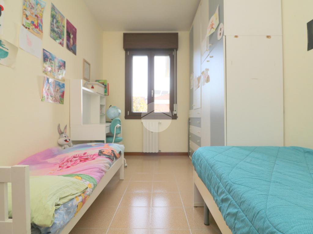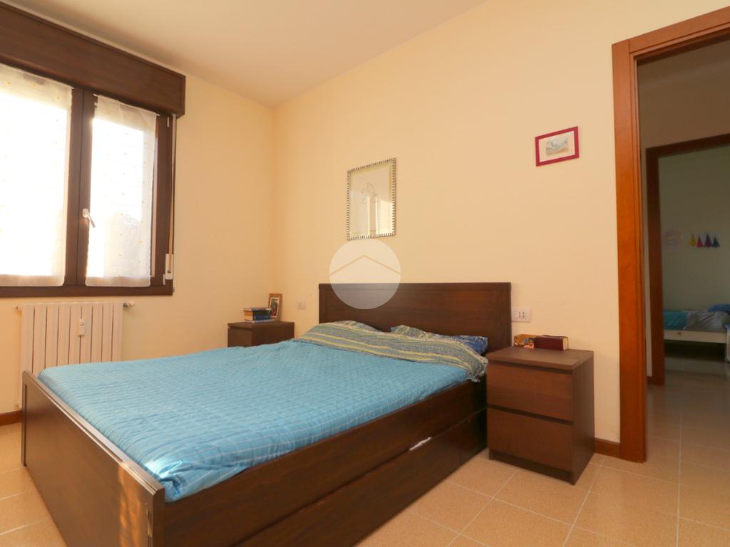 La zona notte, ben disimpegnata, comprende due camere da letto, di cui una spaziosa matrimoniale, e un bagno finestrato con box doccia.