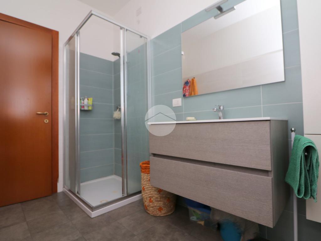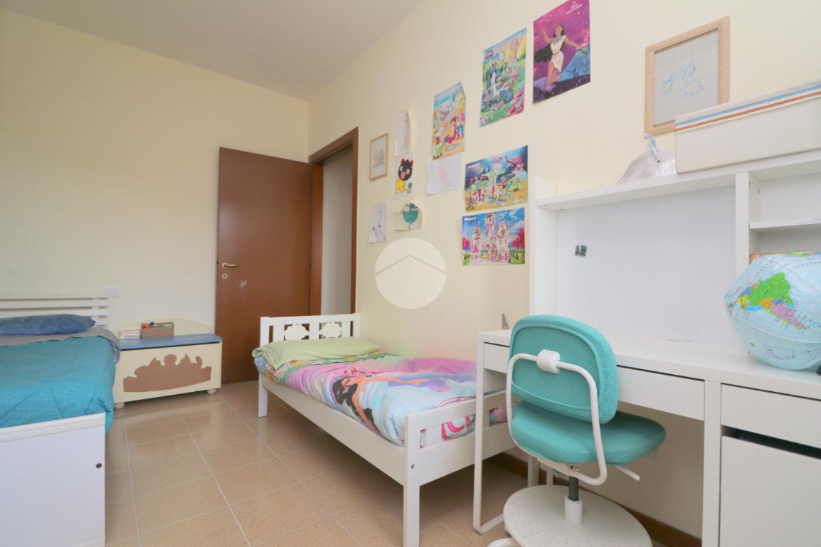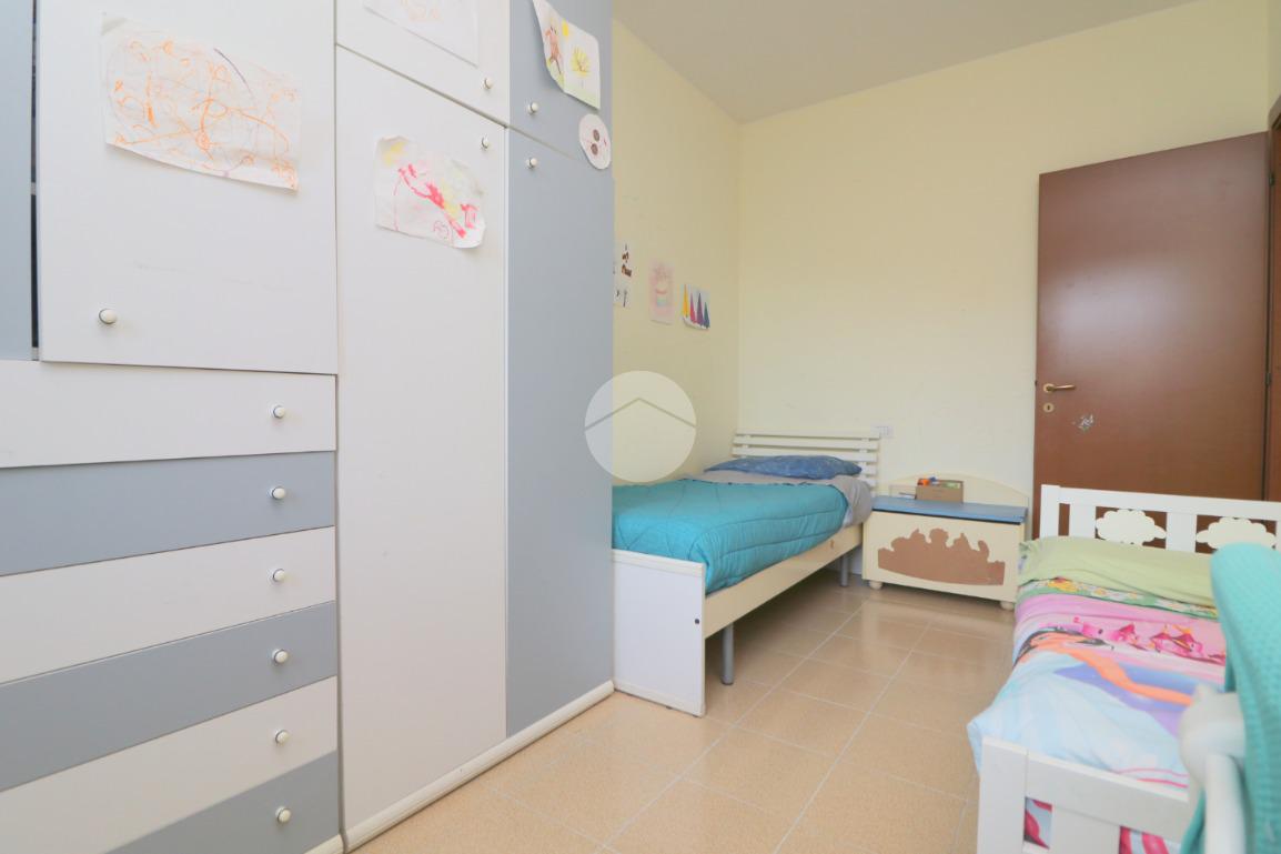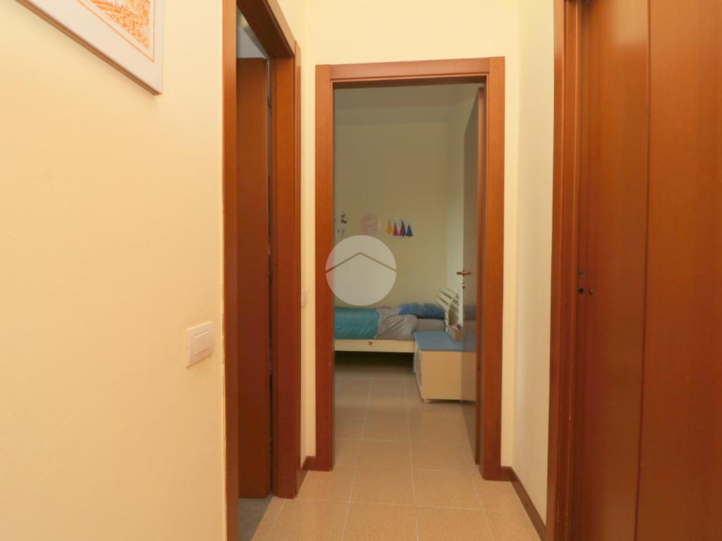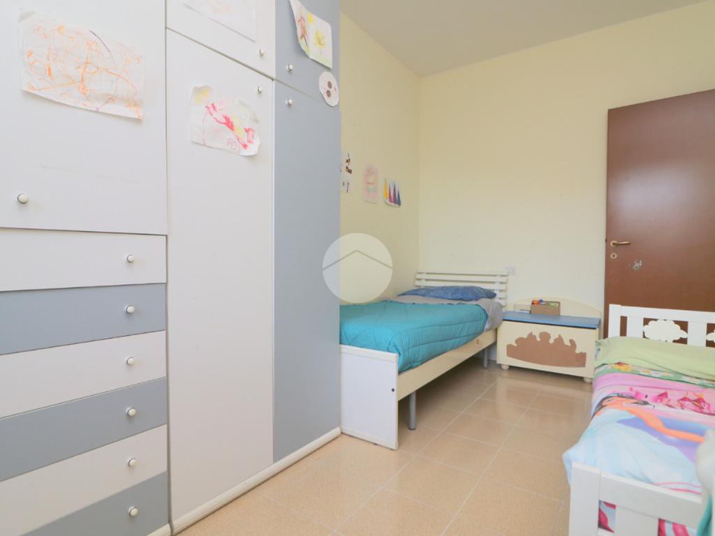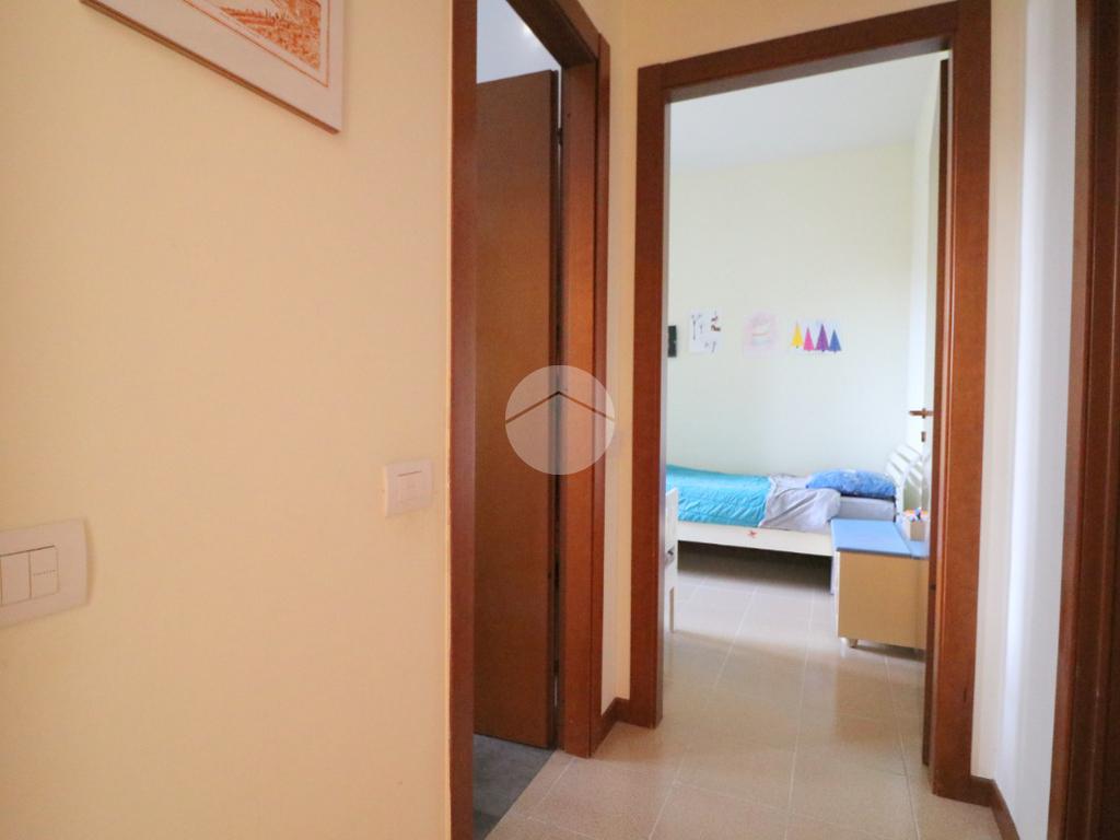 La zona notte, ben disimpegnata, comprende due camere da letto, di cui una spaziosa matrimoniale, e un bagno finestrato con box doccia.
