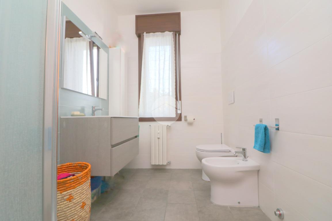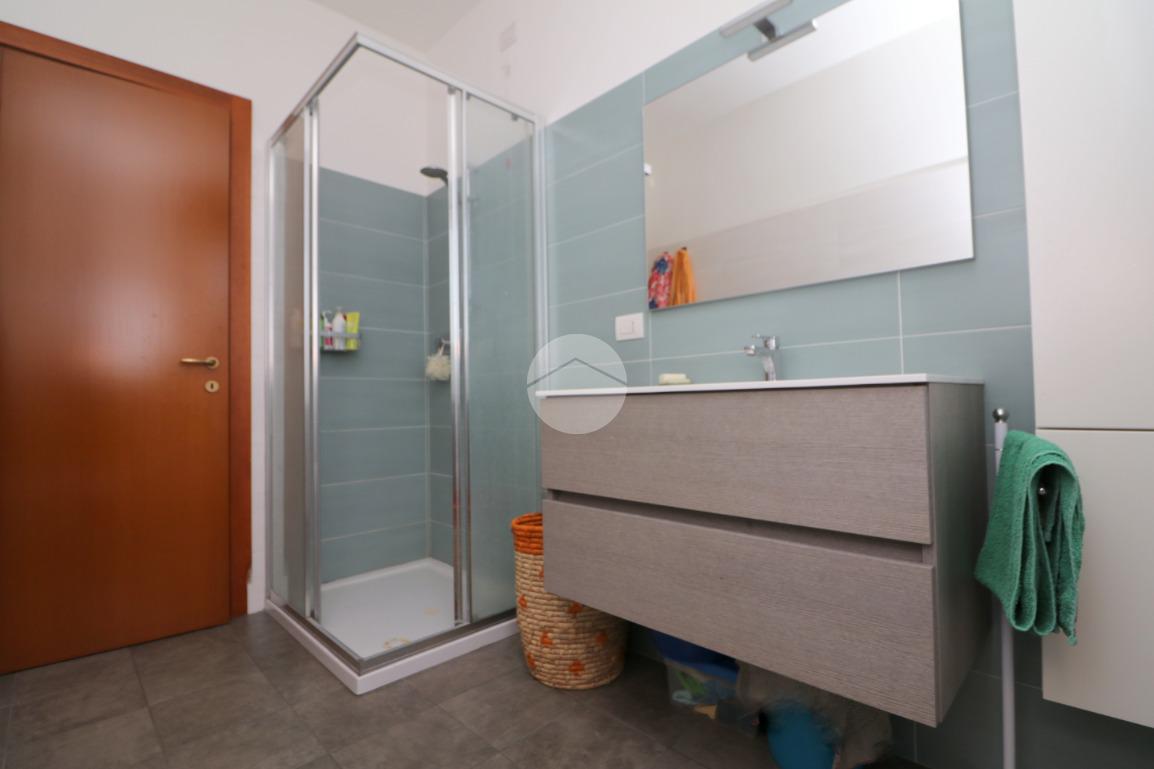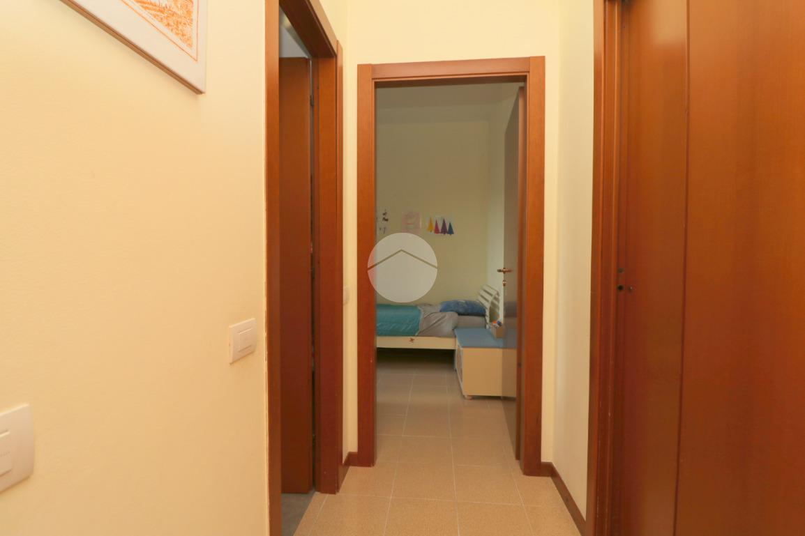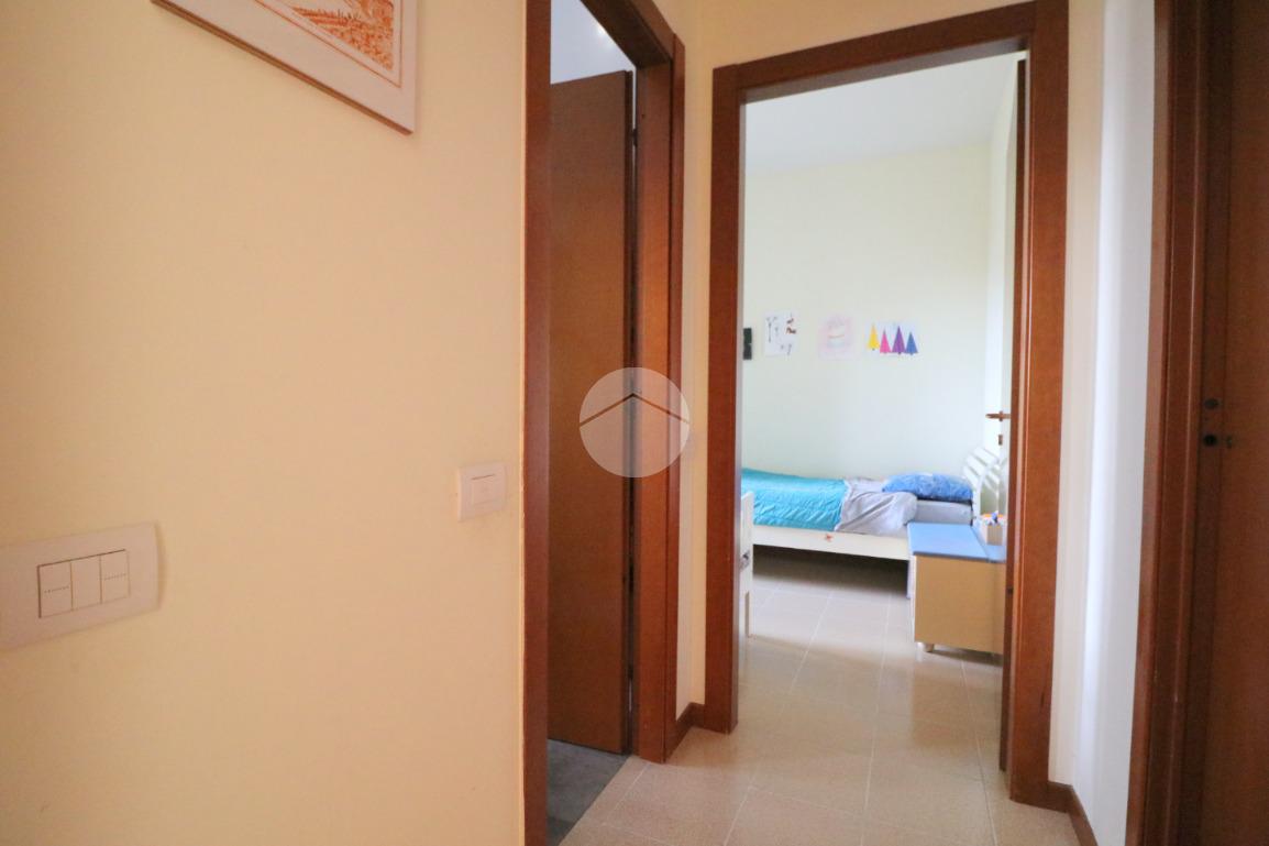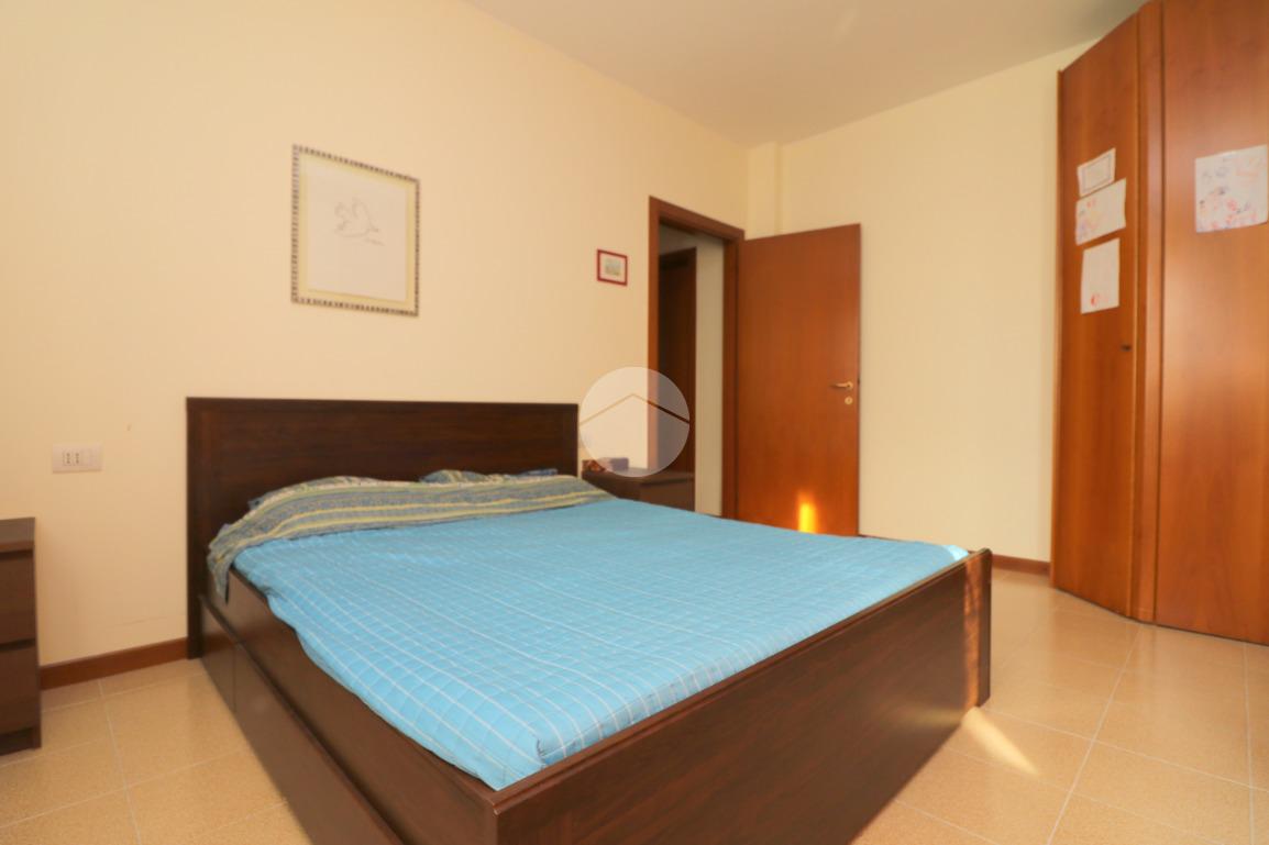 La zona notte, ben disimpegnata, comprende due camere da letto, di cui una spaziosa matrimoniale, e un bagno finestrato con box doccia.