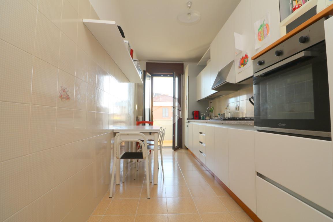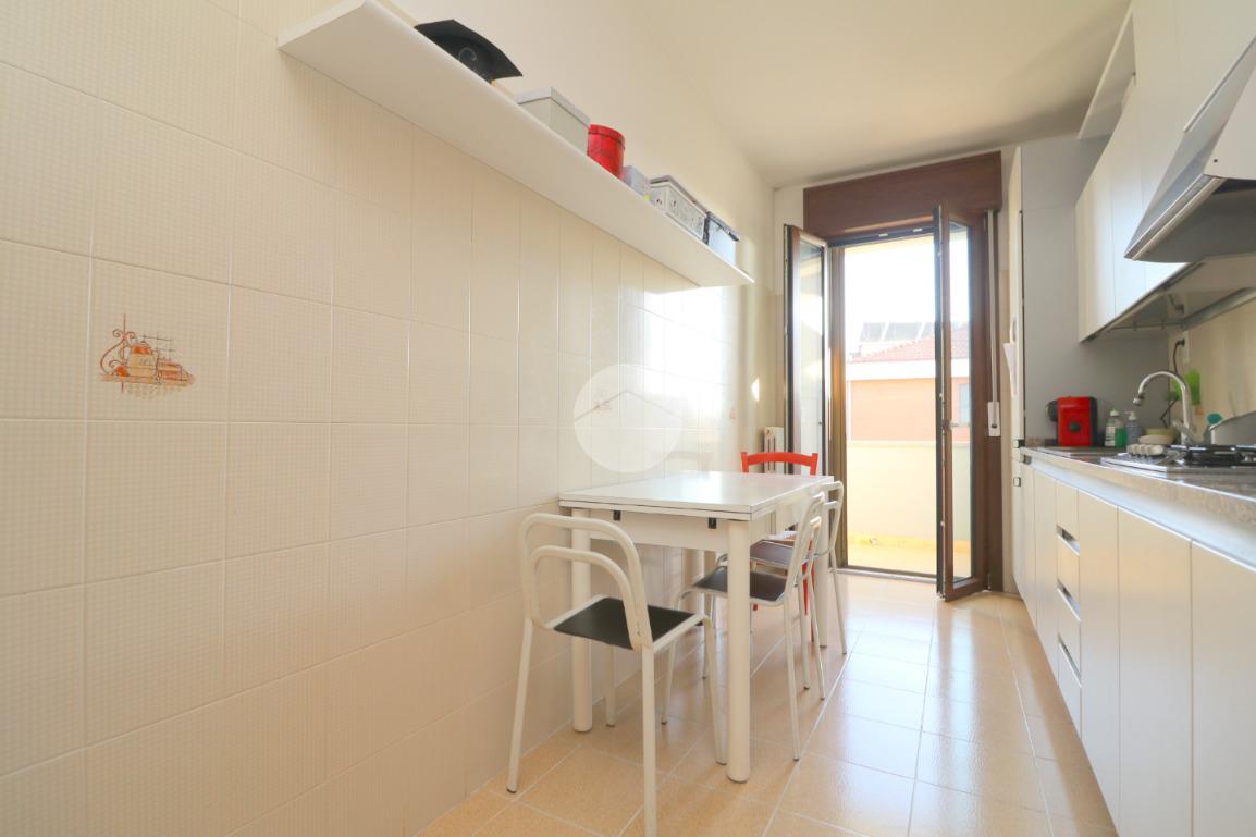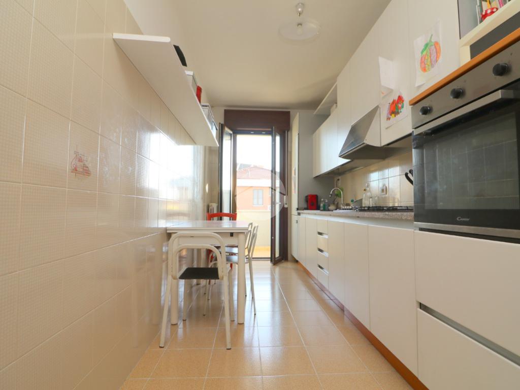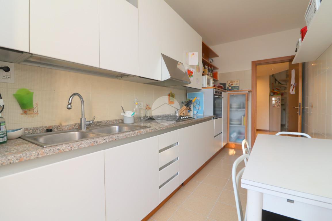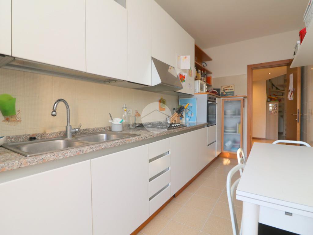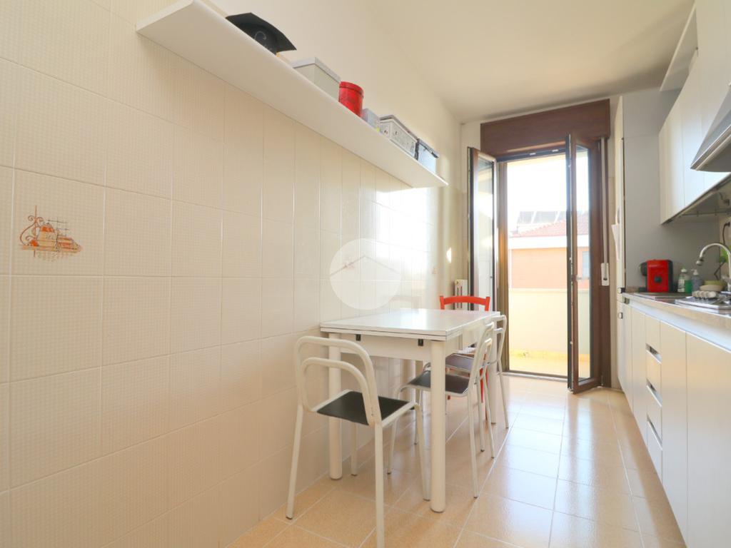 Alla destra dell’ingresso troviamo la cucina abitabile con balconcino di servizio, ideale per riporre la raccolta differenziata o gli attrezzi per la pulizia.
