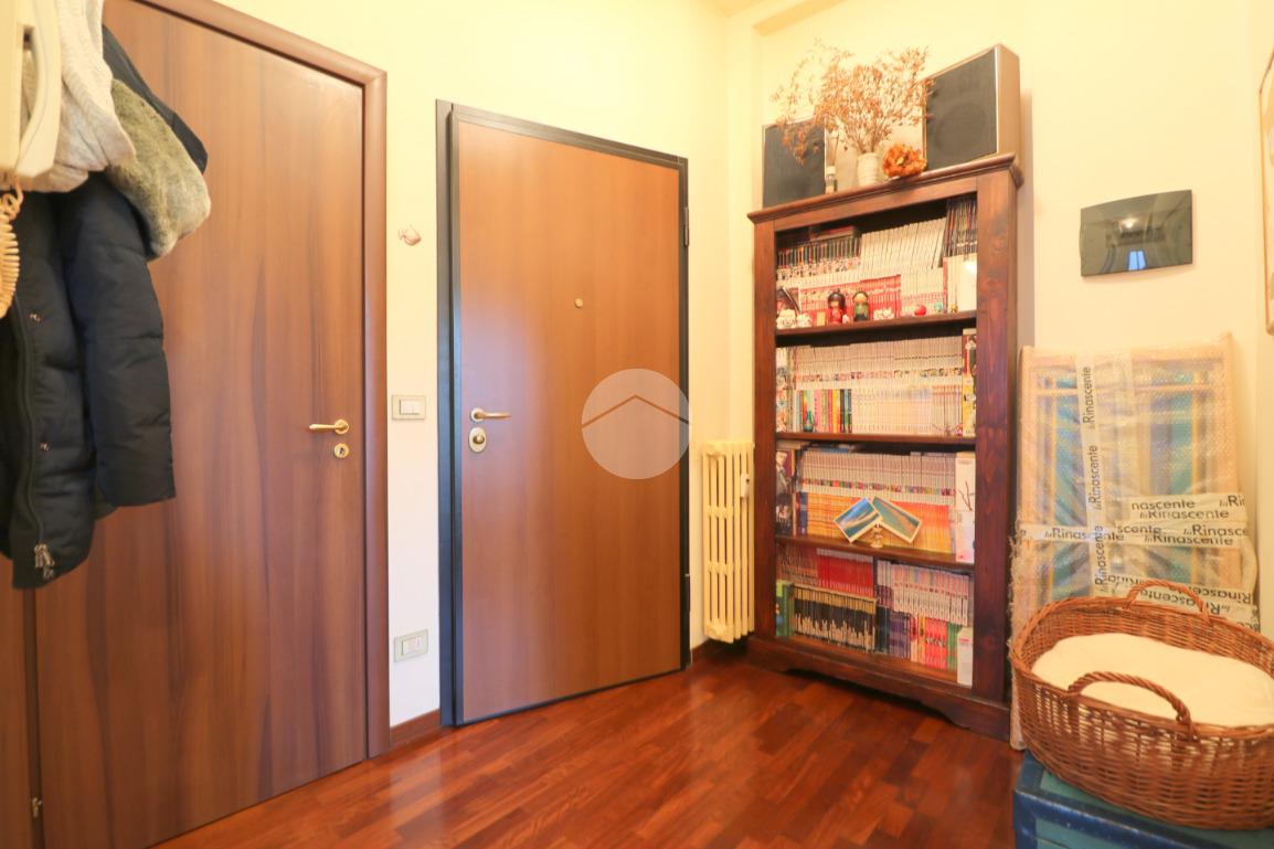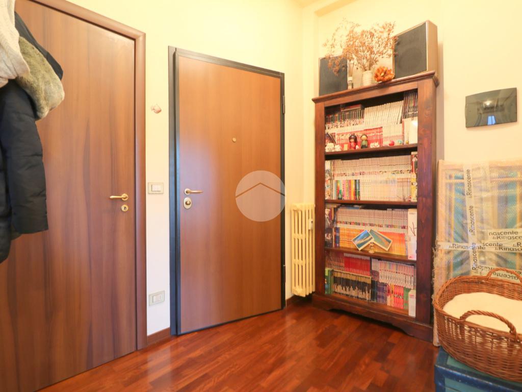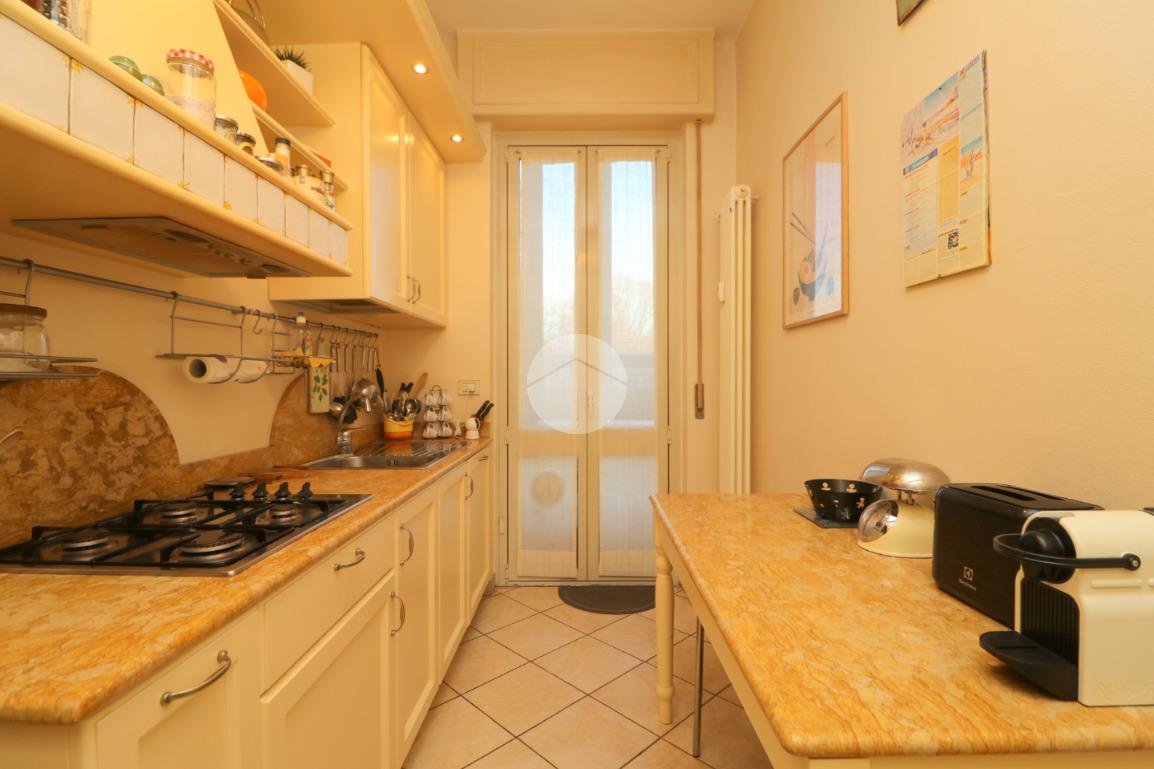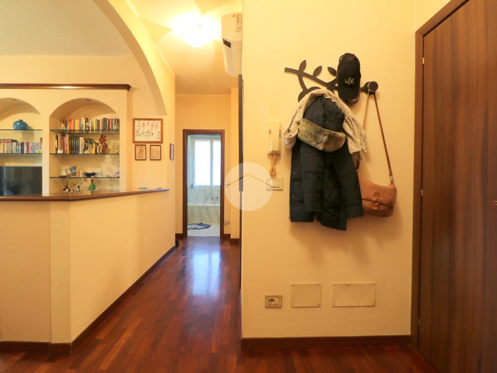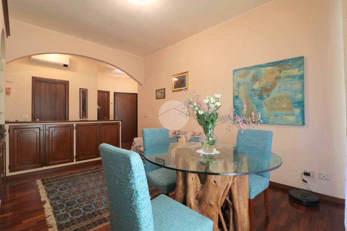 L’ingresso accoglie con un caldo pavimento in parquet, che accompagna anche il resto della zona giorno. Il soggiorno, ampio e ben proporzionato, si affaccia su un ampio balcone, condiviso in parte con la camera matrimoniale.