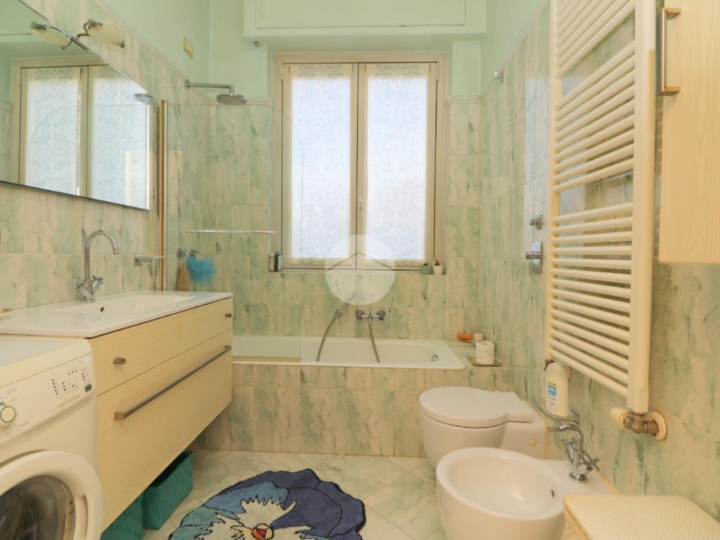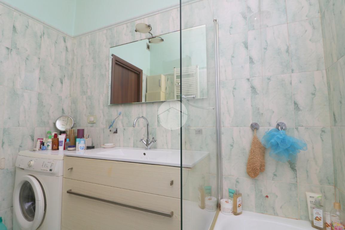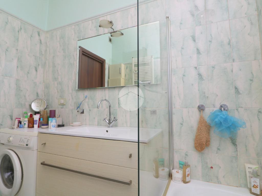 Il bagno finestrato è dotato di doccia con vetro fisso, con finiture sobrie e funzionali.