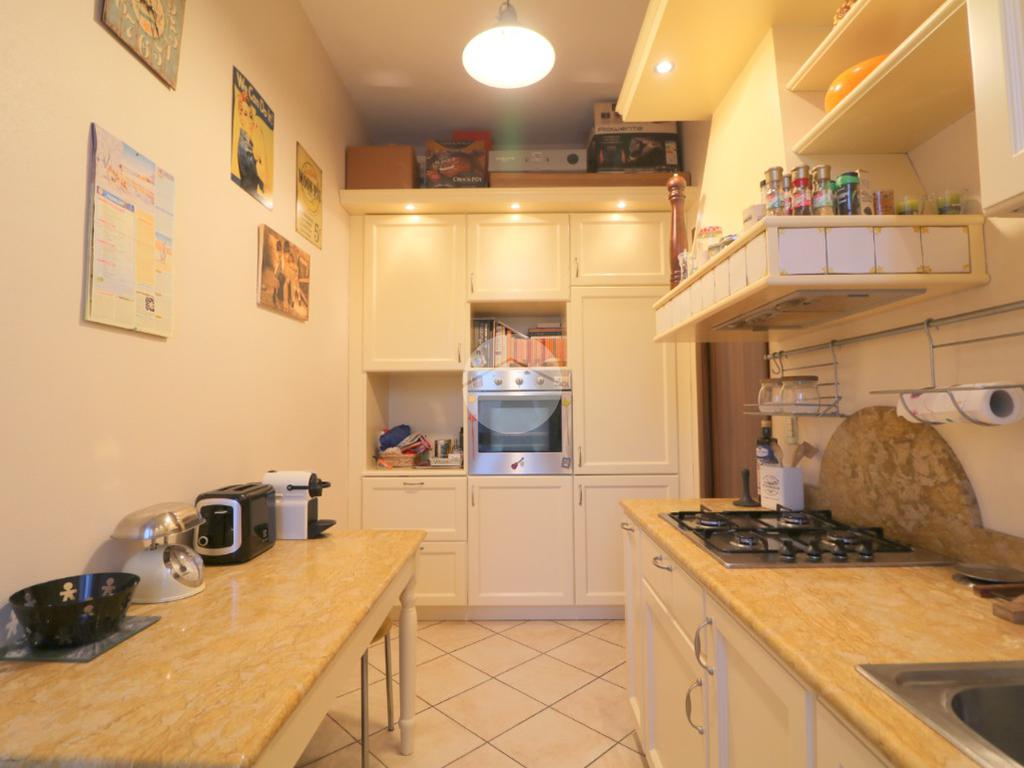 La cucina è abitabile, arredata su misura in uno stile che fonde armoniosamente classico e moderno; il pavimento in cotto dona carattere e calore all’ambiente. Completa la cucina un balconcino di servizio, pratico e riservato.