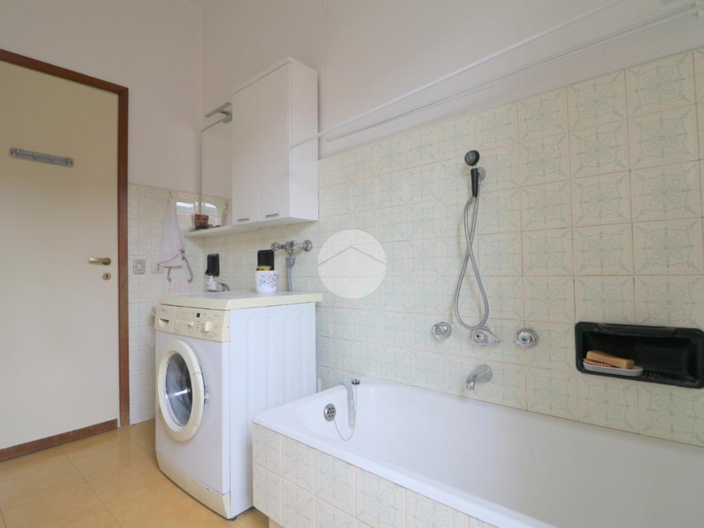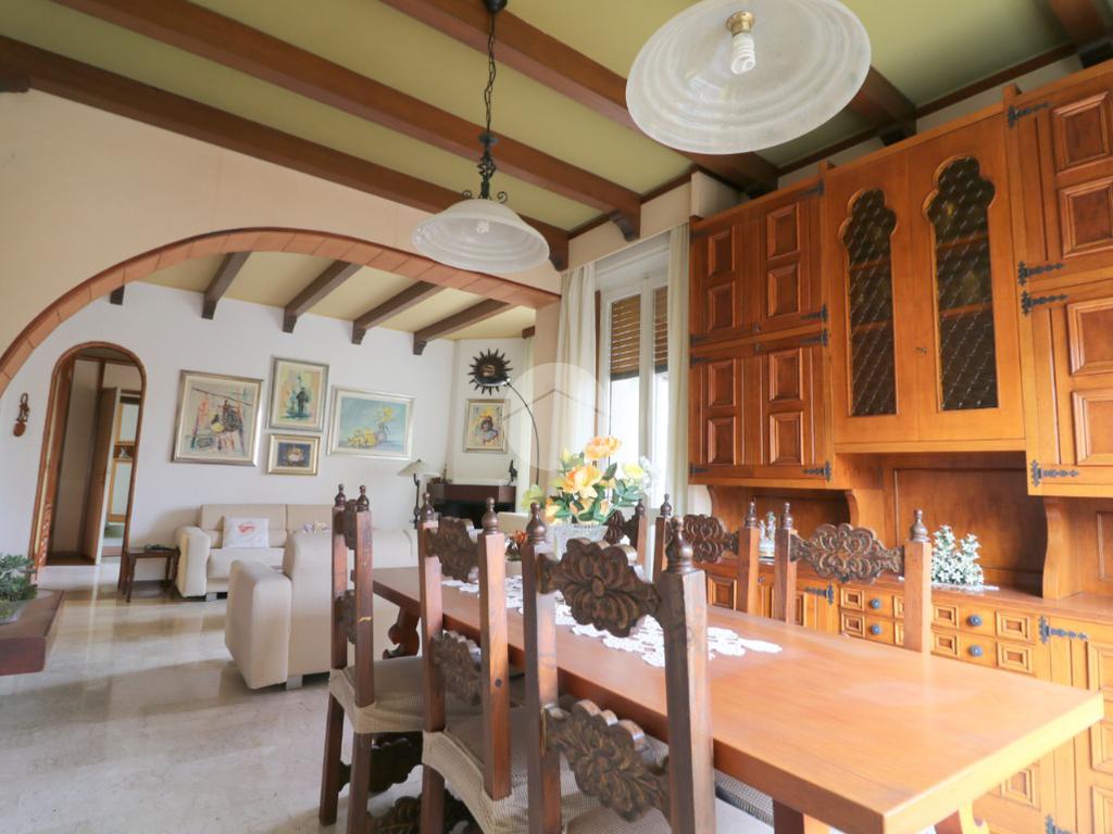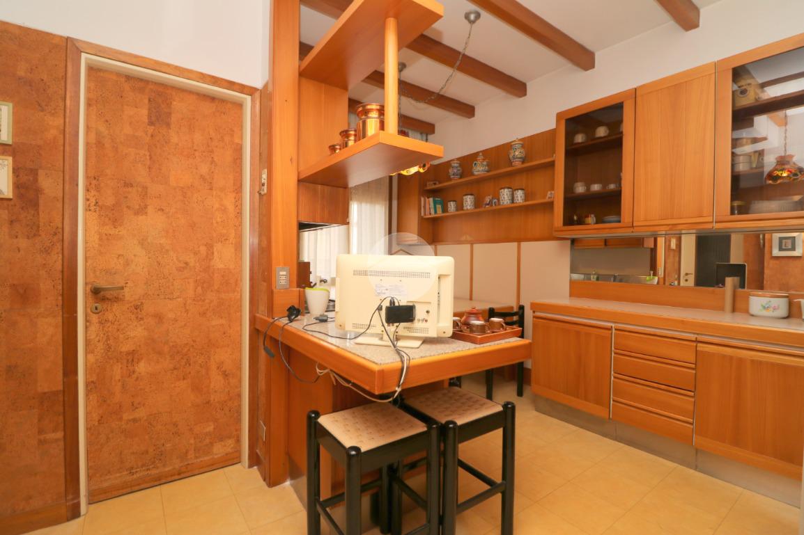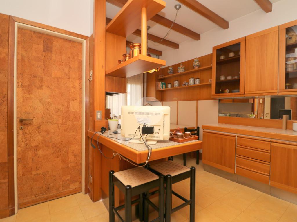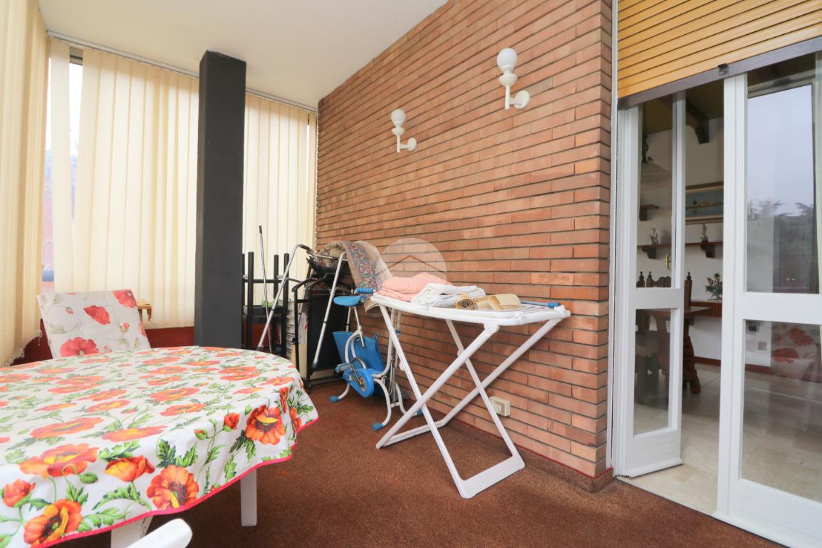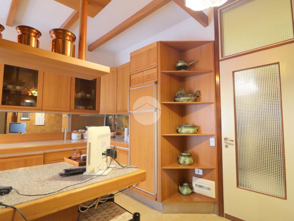 All'ingresso ci accoglie un pratico disimpegno, dotato di funzionale ripostiglio, che ci permette di accedere allo spazioso, ampio e luminoso soggiorno con caratteristico camino ed un accesso al terrazzino verandato. Dalla zona pranzo si accede alla cucina abitabile con balcone e bagno di servizio.