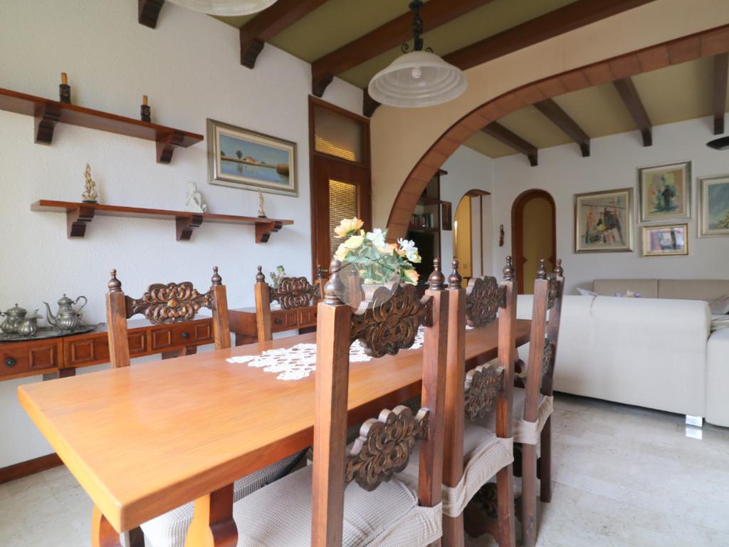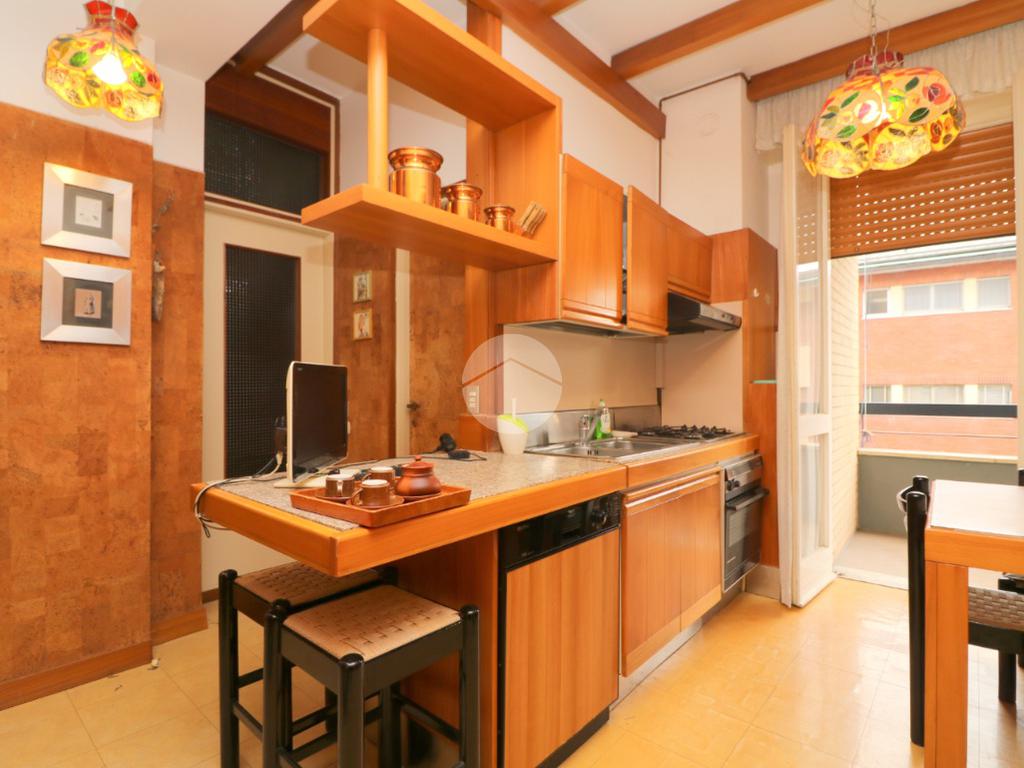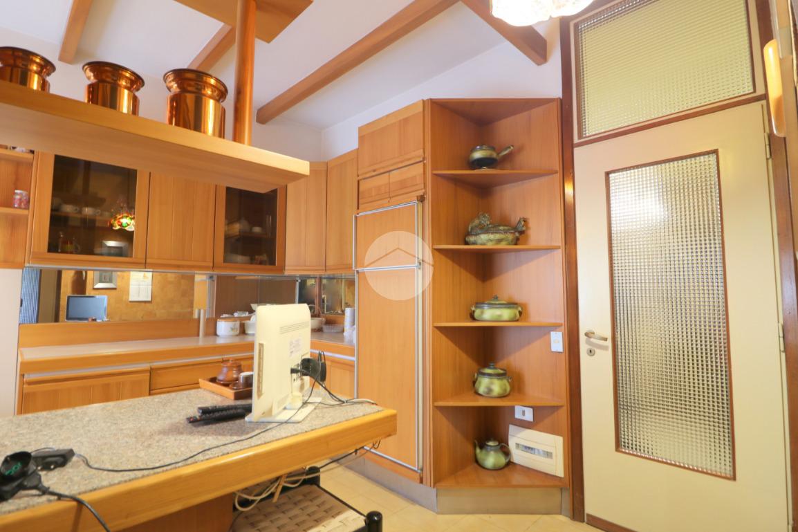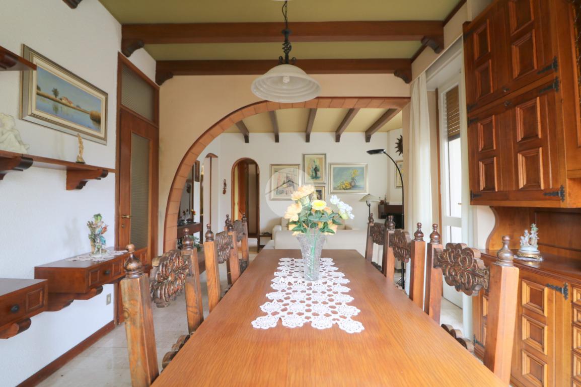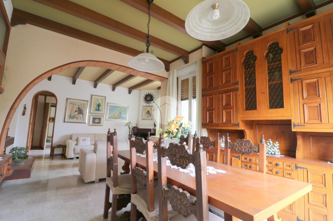 All'ingresso ci accoglie un pratico disimpegno, dotato di funzionale ripostiglio, che ci permette di accedere allo spazioso, ampio e luminoso soggiorno con caratteristico camino ed un accesso al terrazzino verandato. Dalla zona pranzo si accede alla cucina abitabile con balcone e bagno di servizio.