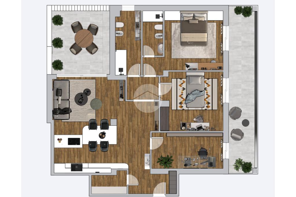 Una soluzione ideale per chi è alla ricerca di spazi generosi, luminosità e terrazzi vivibili, con la possibilità di valorizzare l’immobile attraverso una ristrutturazione
